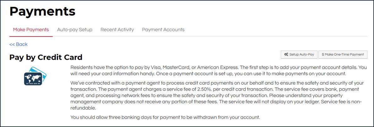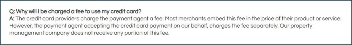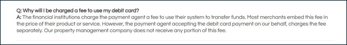 Prior to making a payment, residents are provided with the details about the fees associated with credit or debit card payments.